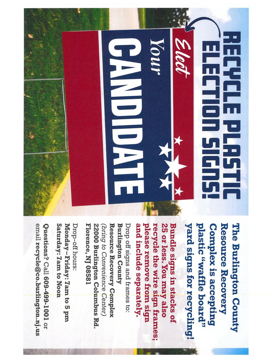 The Burlington County Resource Recovery Complex is accepting plastic “waffle board” yard signs for recycling!