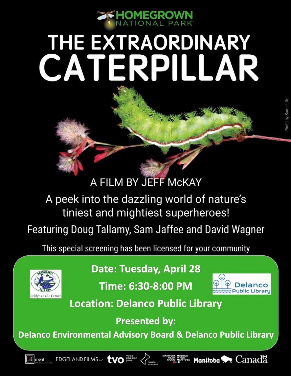 Caterpillars are not just pests. They are in fact a pillar of our natural world. Caterpillars turn into moths and butterflies. They provide food for nesting birds. The Delanco Library, in cooperation with Delanco Environmental Advisory Board (EAB), will present the film The Extraordinary Caterpillar. Come see beautiful photography of these weird and wonderful creatures. Learn about their important role in nature and for humans. The screening will take place on Tuesday, April 28 at 6:30 PM. Discussion will follow and EAB will provide information on how you can support caterpillars in your yard.
