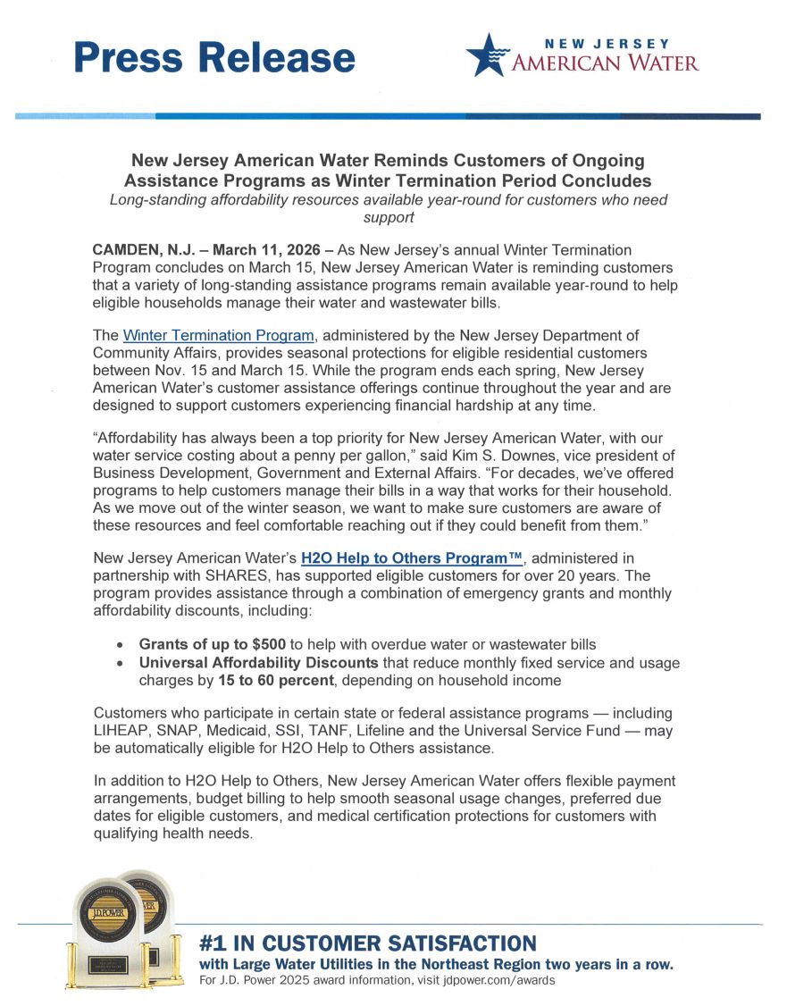 3/31/2026 - NJ American Water- Press Release